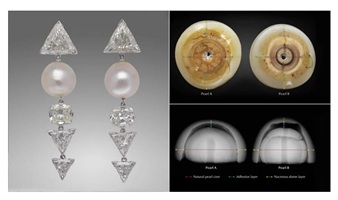The Gemological Institute of America (GIA) recently examined a pair of earrings it found to contain two assembled pearls with each base showing distinct layers of materials. The button-shaped, 7.40- and...