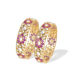 Crafted for movement and celebration, they add rhythm and sparkle to every Lohri moment.These bangles feature exquisite kundan work, with vibrant emerald and ruby stones set in intricate floral motifs. The emeralds...