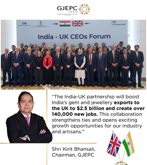 ![]() 10-10-2025 10:50 AM GJEPC Chairman Mr. Kirit Bhansali was privileged to represent the gem and jewellery sector as part of the distinguished delegation accompanying Hon’ble Prime Minister Shri Narendra Modi during his discussions... |