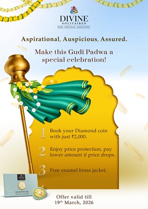18-03-2026 1:25 PM As part of the limited period offer valid till March 19, customers can usher in prosperity and mark new beginnings by booking a Divine Solitaires’ Diamond Coin for the auspicious occasion Divine Solitaires,... |