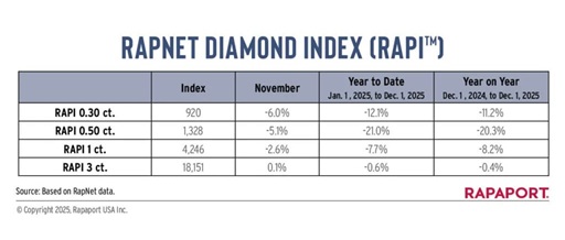 Prices of larger diamonds were steady in November. The market for 1-carat diamonds weakened. Smaller goods showed the sharpest downturn as trends visible in recent months persisted. Prices in India fell more...