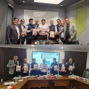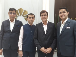 Raman Solanki Chairman of Sangam House of Jewels LLP and Chintan Solanki along with special guest Rajesh Rokde, Chairman, GJC; Prithviraj Kothari, National President, IBJA; Vipul Shah, IPC, GJEPC, Saiyam Mehra,...