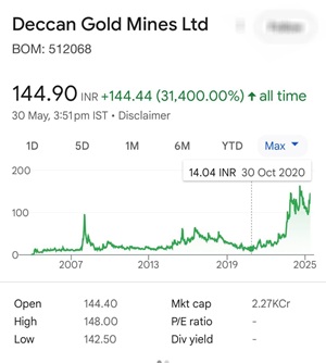 Deccan Gold Mines share prices have risen more than 10 times in last 5years from Rs14.04 to Rs 144.90 as on Friday . Inspite no gold exploration or production in India yet , the share price has appreciated...