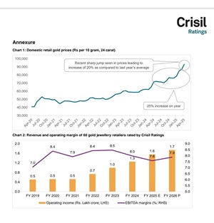 Revenues to still grow in double digits; credit profiles supported by higher operating margins The continued rise in retail gold prices to an all-time high is expected to reduce the sales volume of organised...
